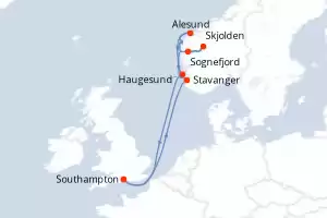 Itinerary : Southampton, Stavanger, Sognefjord, Lustrafjorden, Skjolden, Alesund, Haugesund, Southampton