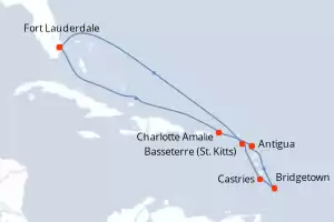 Itinerary : Fort Lauderdale, Antigua, Roseau, Bridgetown, Castries, Basseterre (St Kitts), Fort Lauderdale