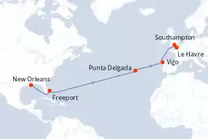 Itinerary : New Orleans, Freeport, Punta Delgada, Vigo, Le Havre, Southampton