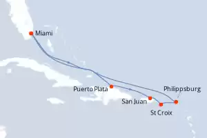 Itinerary : Miami, Puerto Plata, San Juan, Philippsburg, St Croix, Miami