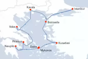 Itinerary : Piraieus, Nauplio, Mykonos, Delos, Mykonos, Kusadasi, Bozcaada, Istanbul, Kavala, Volos, Piraieus