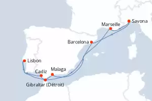 Itinerary : Savona, Barcelona, Gibraltar (Strait), Lisbon, Cadiz, Malaga, Marseille, Savona