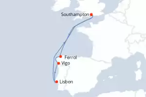Itinerary : Southampton, Ferrol, Vigo, Lisbon, Southampton