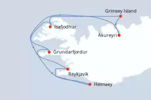 Itinerary : Reykjavik, Heimaey, Grundarfjordur, Grimsey Island, Akureyri, Isafjodhur, Reykjavik