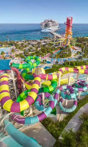 Royal Caribbean serves a variety of destinations, including the Caribbean and West Indies, the Bahamas, the Mediterranean, the Adriatic Sea, the Greek Islands, and Alaska. Since 2019, Royal Caribbean has been offering the "Perfect Day at Cococay" experience, an exclusive stopover on its private island in the Bahamas, home to the sensational Thrill Waterpark and floating cabanas for relaxation.